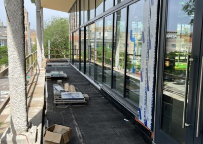 - Outside, the new addition will feature a terrace deck with views of the city, accessed by oversize sliding glass doors which also introduce fresh air and breezes to the event space.