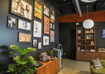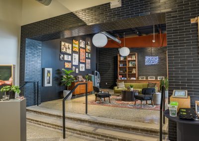 To make the space more eco-friendly, CD Barnes Construction added skylights to bring in natural light and repurposed existing steel girder beams. The team also upgraded the storefront’s framing and glass to be more energy efficient.